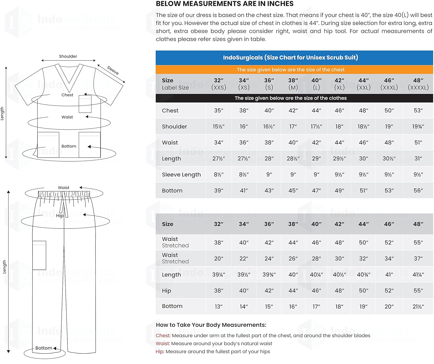 Two roomy bottom patch pockets, Narrow Breast pocket for pen, cell phone etc. Drawstring with elastic closure pants.